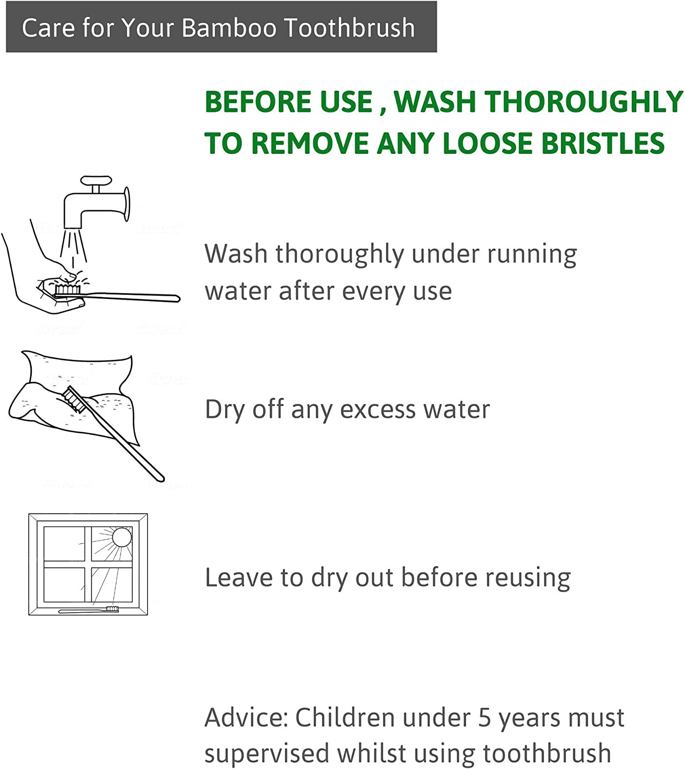 ✅ HYGIENICALLY SEALED – Each pack contains 4 individually sealed toothbrushes. As they are individually eco wrapped in recyclable paper so if you don’t need all four, you can give one to a friend or family member for them to try bamboo too. Each paper wrap is printed with the relevant African animal inside, so pick your favourite. Wash thoroughly, removing any loose bristles before use.
